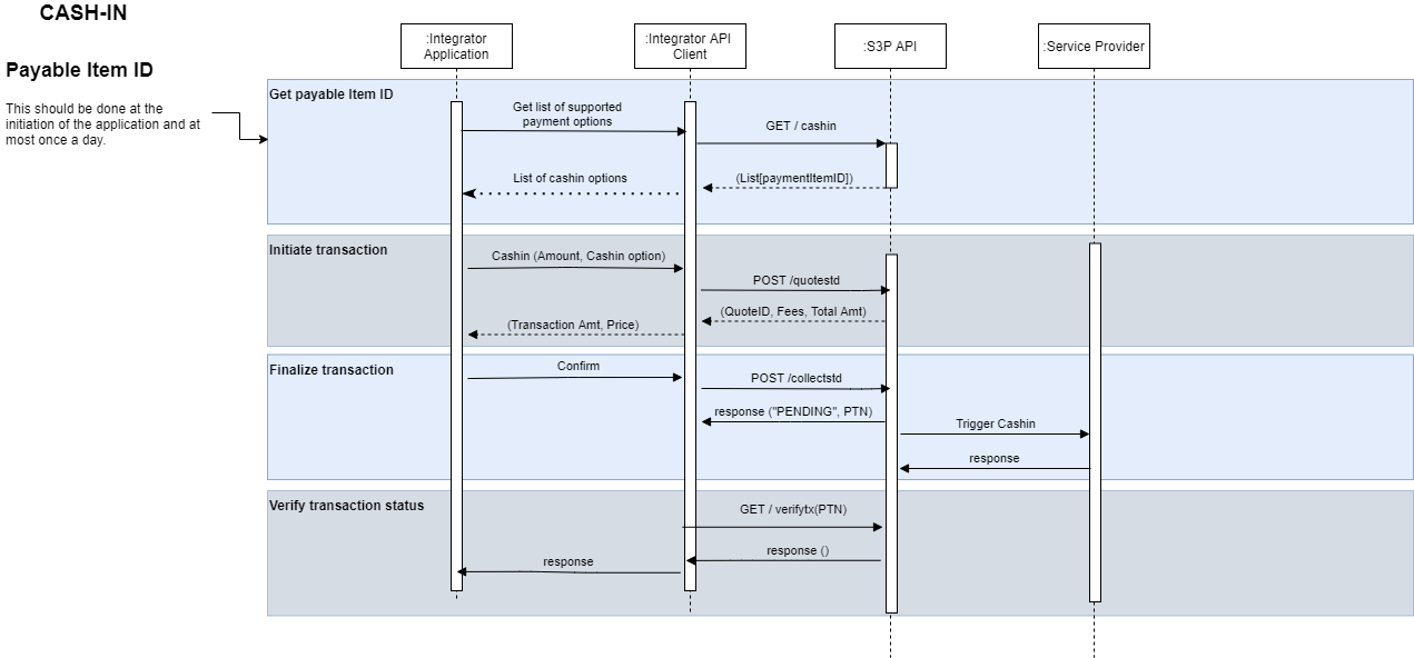 Get a payable item ID for the service provider by calling the /cashin endpoint