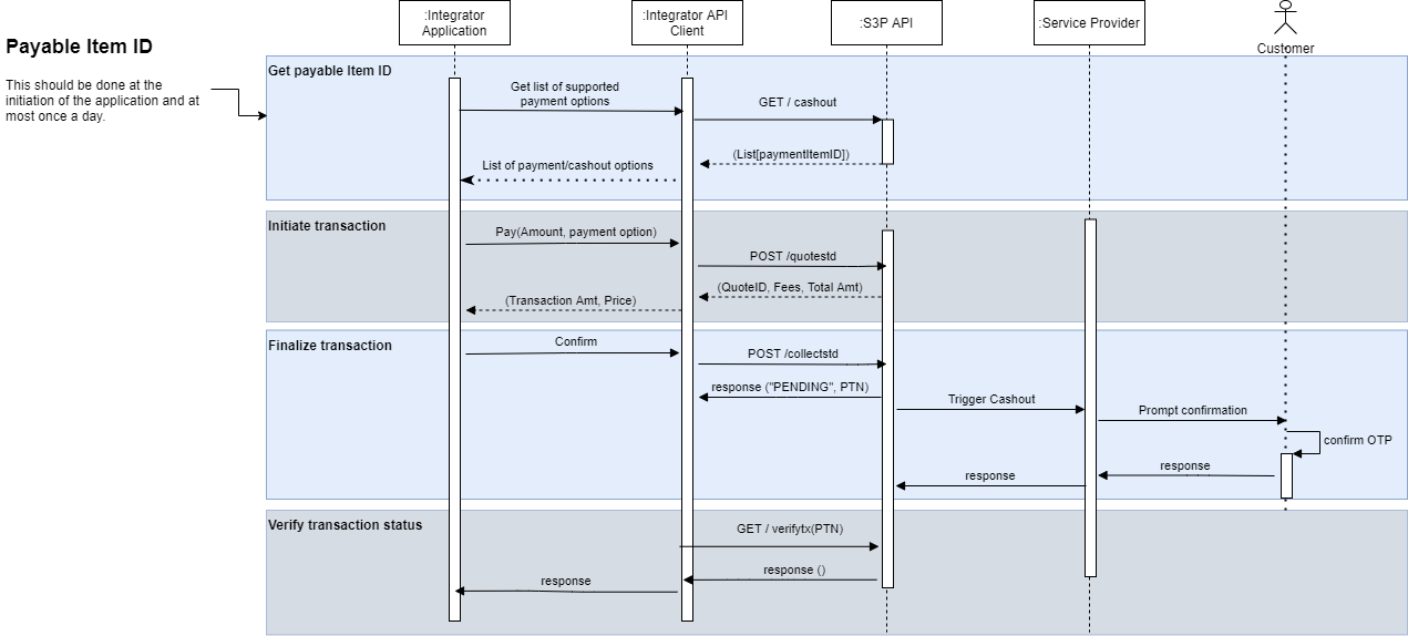 Get a payable item ID for the service provider by calling the /cashout endpoint